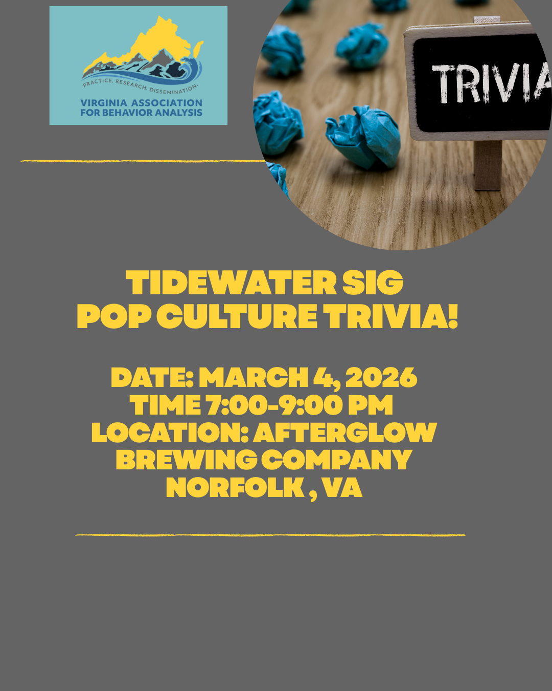 Join the Tidewater SIG for a night of Pop Culture Trivia!